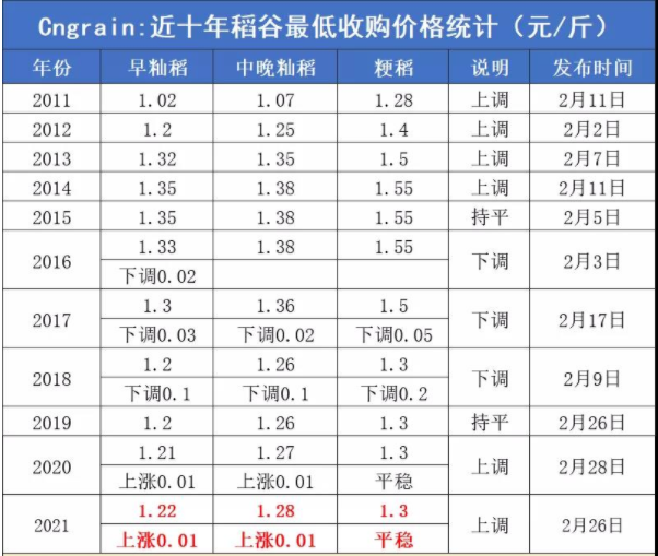 • 1、2021年稻谷最低收購價(jià)公布