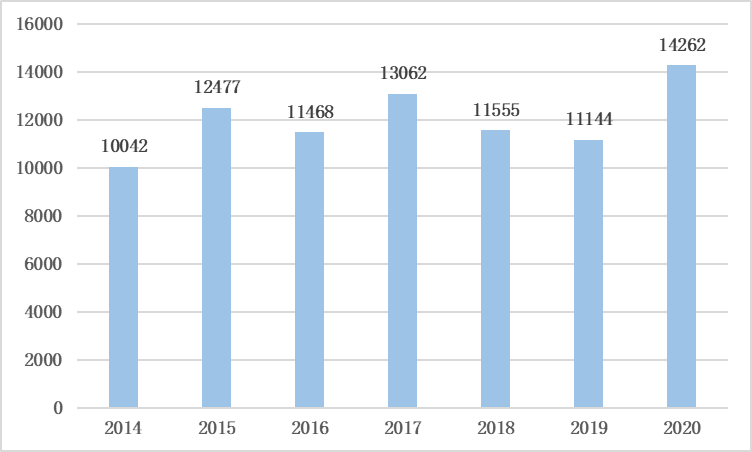2014-2020年我國糧食進口量(萬噸)