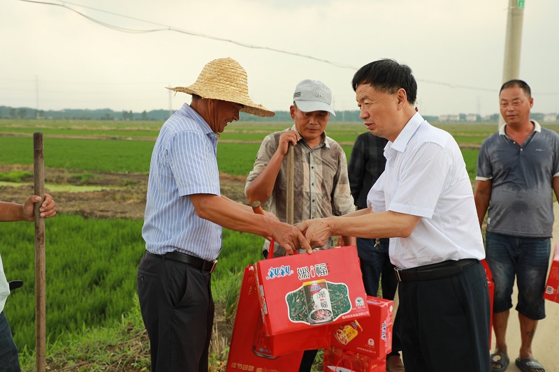 7月14日下午,蘇墾農(nóng)發(fā)公司黨委副書記、工會主席倪志愿一行來到崗埠分公司開展“送清涼、送安全、送法律”慰問活動。