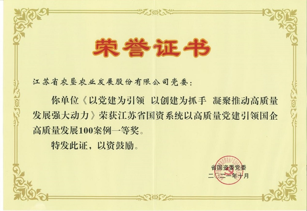 • 近日,由蘇墾農發黨委報送的《以黨建為引領 以創建為抓手 凝聚推動高質量發展強大動力》榮獲“江蘇省國資系統以高質量黨建引領國企高質量發展100案例”一等獎;《“爭創紅旗黨支部”激發基層組織新活力》在集團黨建工作“創典型、創品牌、創特色”案例評選中榮獲一等獎。這些榮譽的獲得充分肯定了近年來農發公司黨委理論學習中心組學習所取得的積極成效。