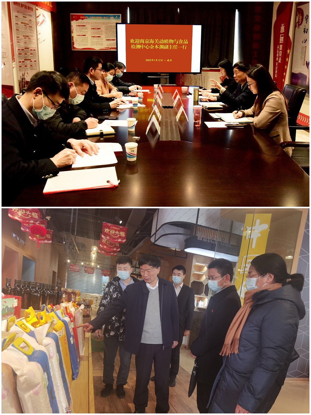 1月12日,南京海關動植物與食品檢測中心余本淵副主任一行5人來到蘇墾農發,參觀學習、交流探討黨建工作。蘇墾農發黨委副書記、工會主席倪志愿陪同參觀交流。