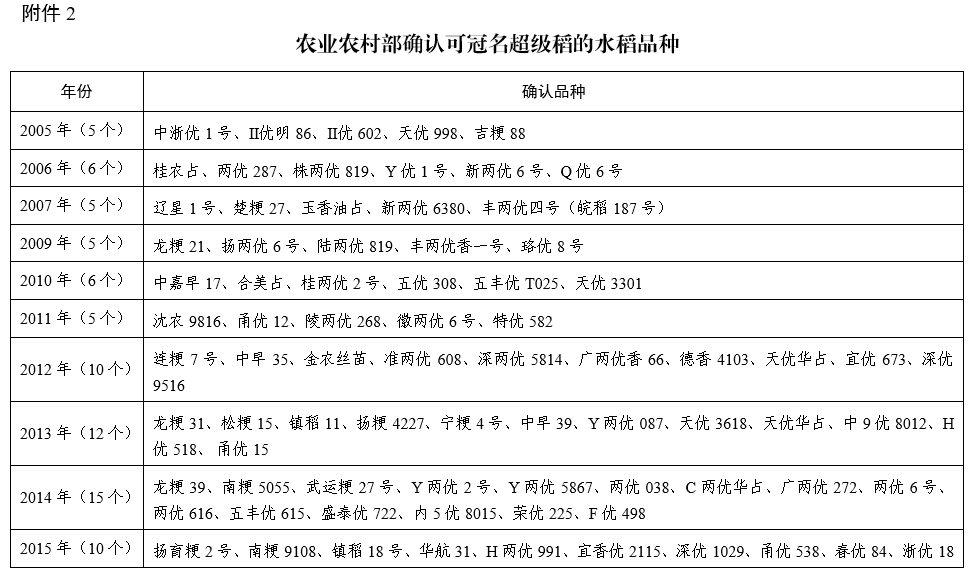 同時,因推廣面積未達要求,蓮稻1號、長白25N兩優2號等3個品種不再冠名超級稻。截至目前,經農業農村部確認、可冠名超級稻的水稻品種共135個。