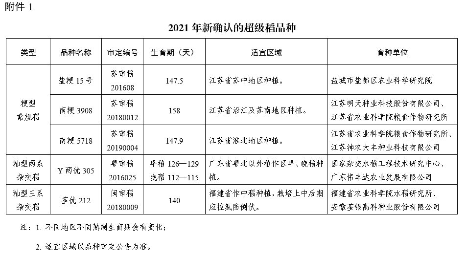 近日,全國農業技術推廣服務中心組織開展了2021年超級稻品種確認工作。根據《超級稻品種確認辦法》,經各地推薦和專家評審,農業農村部確認鹽粳15號、南粳3908、南粳5718Y兩優305、荃優2125個品種為2021年超級稻品種。