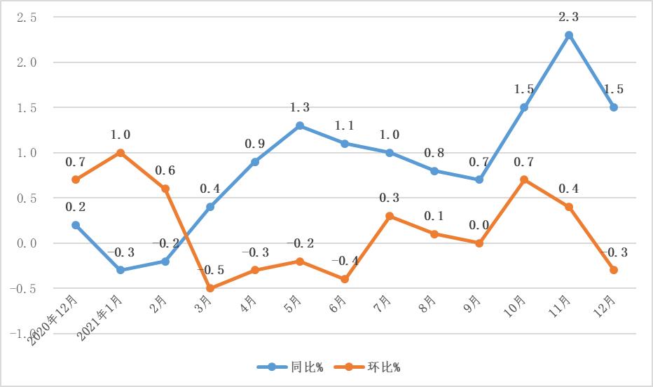 202112月份CPI同比上漲1.5%