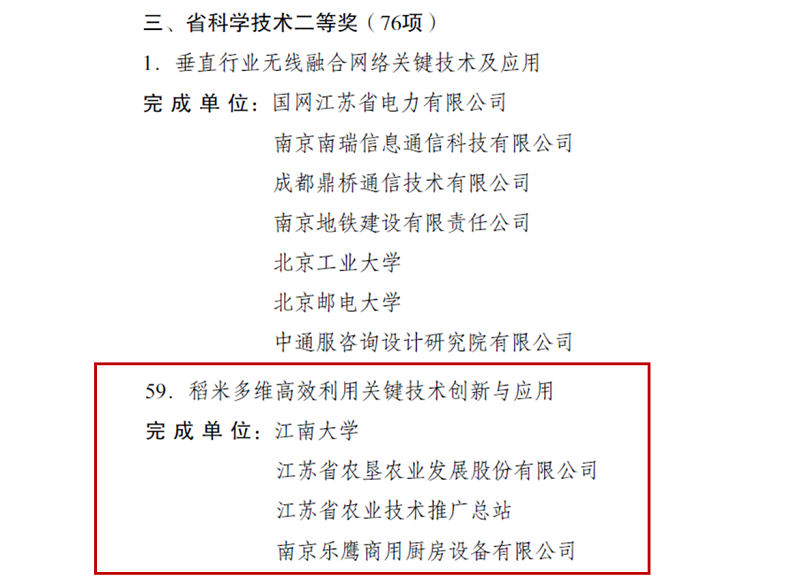 近日,江蘇省人民政府發(fā)布《省政府關(guān)于2021年度江蘇省科學(xué)技術(shù)獎(jiǎng)勵(lì)的決定》(蘇政發(fā)〔2022〕28號(hào)),江蘇省農(nóng)墾農(nóng)業(yè)發(fā)展股份有限公司與江南大學(xué)等單位合作研發(fā)的“稻米多維高效利用關(guān)鍵技術(shù)創(chuàng)新與應(yīng)用”成果榮獲二等獎(jiǎng),這是蘇墾農(nóng)發(fā)公司組建以來首次獲得該獎(jiǎng)勵(lì),彰顯公司在農(nóng)產(chǎn)品精深加工領(lǐng)域內(nèi)突出的研發(fā)能力和創(chuàng)新潛質(zhì)。