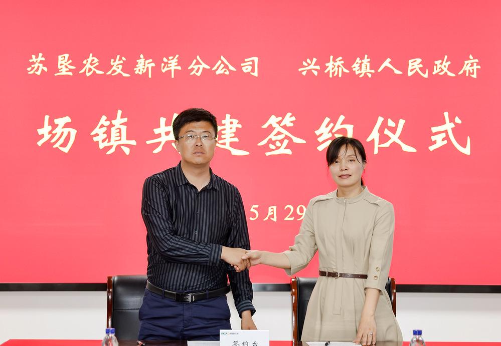 5月29日下午,新洋分公司與興橋鎮(zhèn)人民政府舉行場(chǎng)鎮(zhèn)共建簽約儀式,新洋分公司副總經(jīng)理耿輝輝、興橋鎮(zhèn)農(nóng)業(yè)農(nóng)村局局長(zhǎng)潘玉霞出席簽約儀式。