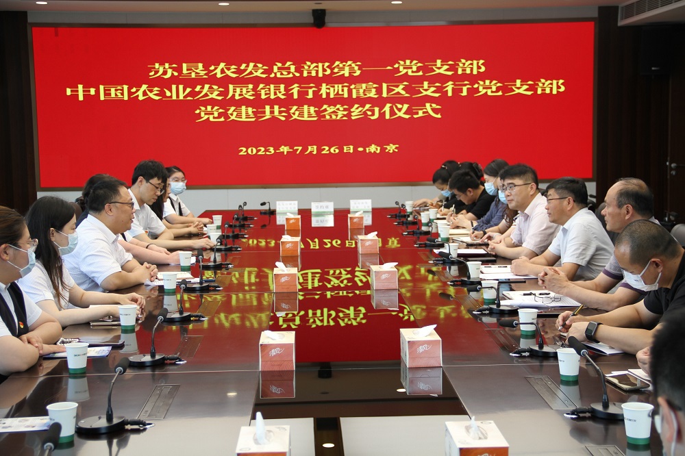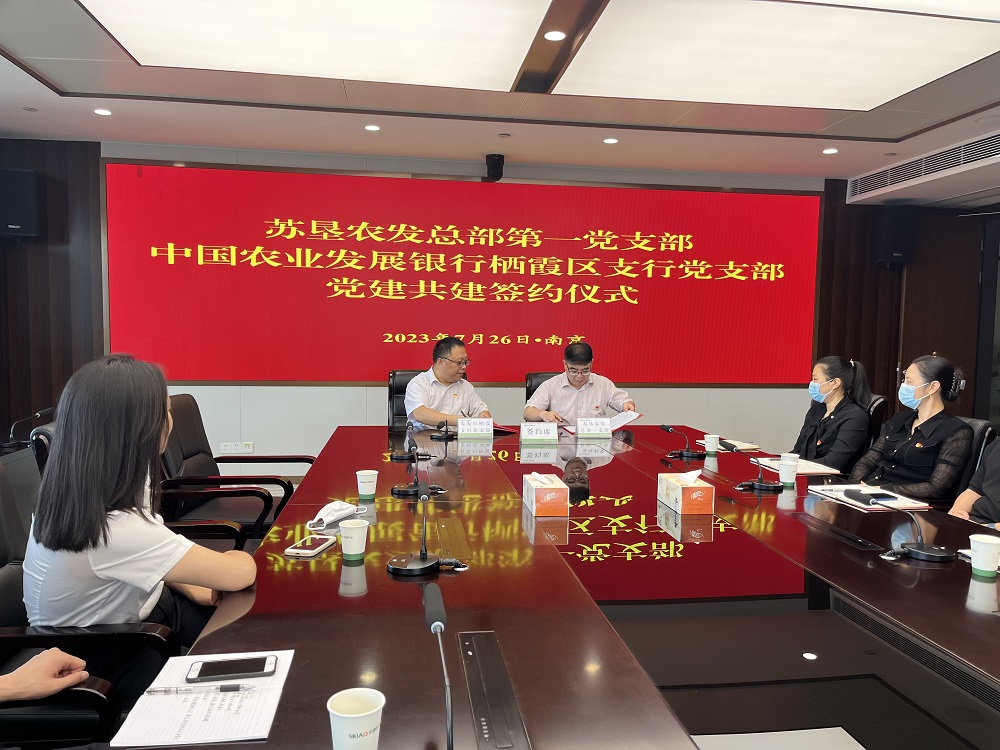 活動開始,雙方支部共同開展第一議題學習,蘇墾農(nóng)發(fā)總部一支部書記劉剛領學了習近平總書記在江蘇考察期間發(fā)表的重要講話精神。農(nóng)發(fā)行棲霞支行黨支部書記丁全楠領學了習近平總書記在《求是》雜志上發(fā)表的《健全全面從嚴治黨體系,推動新時代黨的建設、新的偉大工程向縱深發(fā)展》重要文章精神。蘇墾農(nóng)發(fā)財務總監(jiān)陶應美介紹了公司與金融機構(gòu)業(yè)務開展情況,對公司深化與農(nóng)發(fā)行在優(yōu)化省級儲備糧業(yè)務、拓展農(nóng)業(yè)政策性金融服務等方面合作提出建議。隨后,雙方支部緊扣“以學促干”開展了座談交流,就加強黨建工作及銀企業(yè)務合作作了深入探討等。雙方一致表示,蘇墾農(nóng)發(fā)與農(nóng)發(fā)行棲霞支行肩負保障國家糧食安全、落實“藏糧于地、藏糧于技”等國家重大戰(zhàn)略上有著共同使命責任,希望通過開展黨建共建,進一步推動黨建與業(yè)務融合,深化銀企合作。會上,雙方黨支部還簽訂了《黨建共建協(xié)議書》。