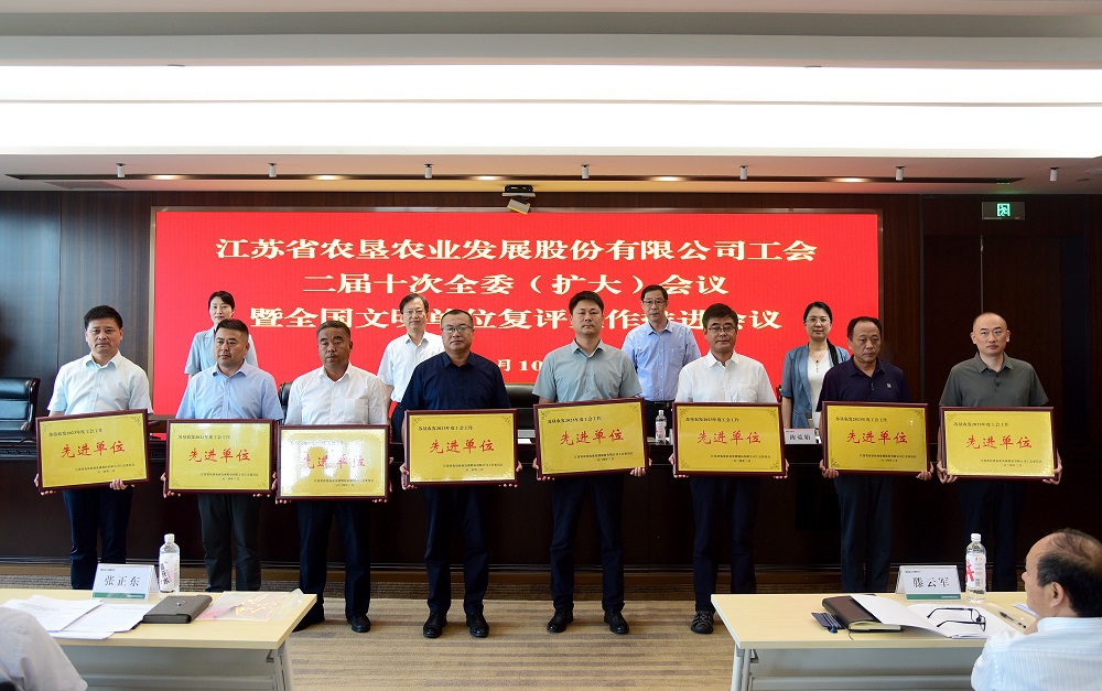 •        7月10日,蘇墾農發工會在南京召開二屆十次全委(擴大)會議暨全國文明單位復評工作推進會議,會議總結交流2023年工作、表彰先進,全面部署2024年工會工作重點任務,并就全國文明單位復評迎檢工作作出進一步安排。公司黨委副書記、工會主席王進強出席會議并講話。