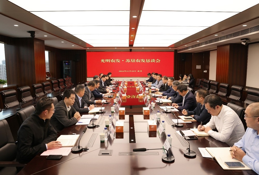 •        11月18日下午,光明農業發展 (集團) 有限公司與江蘇省農墾農業發展股份有限公司在南京舉辦懇談會。省農墾集團總經濟師、蘇墾農發黨委書記、董事長朱亞東主持會議,光明農發集團黨委書記、董事長陳斐然,省農墾集團黨委委員、蘇墾農發總裁丁濤,光明農發集團總裁吳偉峰參加座談交流。