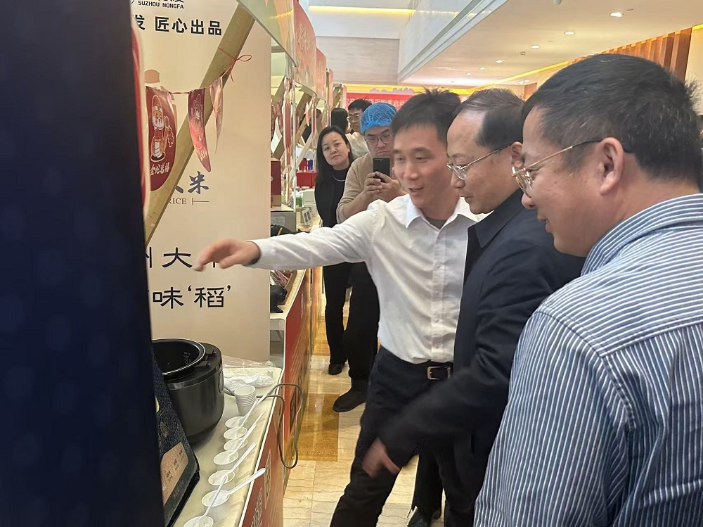 查穎冬副市長聽取工作人員“蘇墾15度鮮大米”介紹