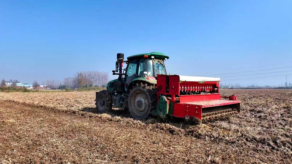 精細化管理是今年秋播工作的又一亮點。各外拓基地根據當地實際情況,制定了詳細的秋播技術方案和田間管理預案。基地辦全體人員分區包干,駐點跟蹤服務,對整地質量、播種深度、密度和施肥量等進行專項督查指導,做到“一區一策”,實現精準化管理。同時,加強土壤墑情監測,密切關注天氣變化,及時做好抗旱防澇準備,確保秋播小麥在最佳環境下生長。此外,充分發揮現代農業機械化優勢,外聯大批先進、智能的農業機械參與秋播作業。根據今年土壤墑情,選擇小履帶拖拉機進行開溝作業,安裝了北斗導航系統的智能化播種機實現直線播種、播深一致,不僅大幅提升了作業效率和質量,也為后續的田間管理和機械化收獲創造了有利條件。
